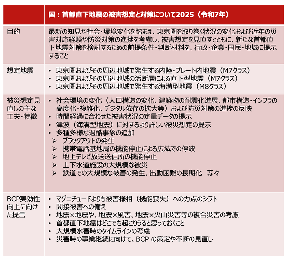 本記事では、今回の国の被害想定と、過去に東京都が発表してきた被害想定との関係性を整理しつつ、見直しによる主な変更点と、それが企業に与えるインパクトを明らかにします。また、企業としてこの想定をどのように活用し、どのような備えや行動につなげるべきかを具体的に解説します。