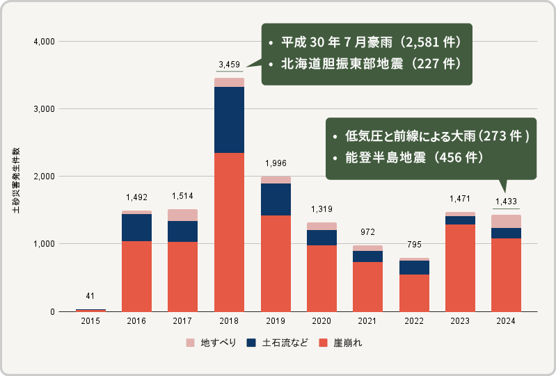 - 国土交通省「 平成30年 全国の土砂災害発生状況 」