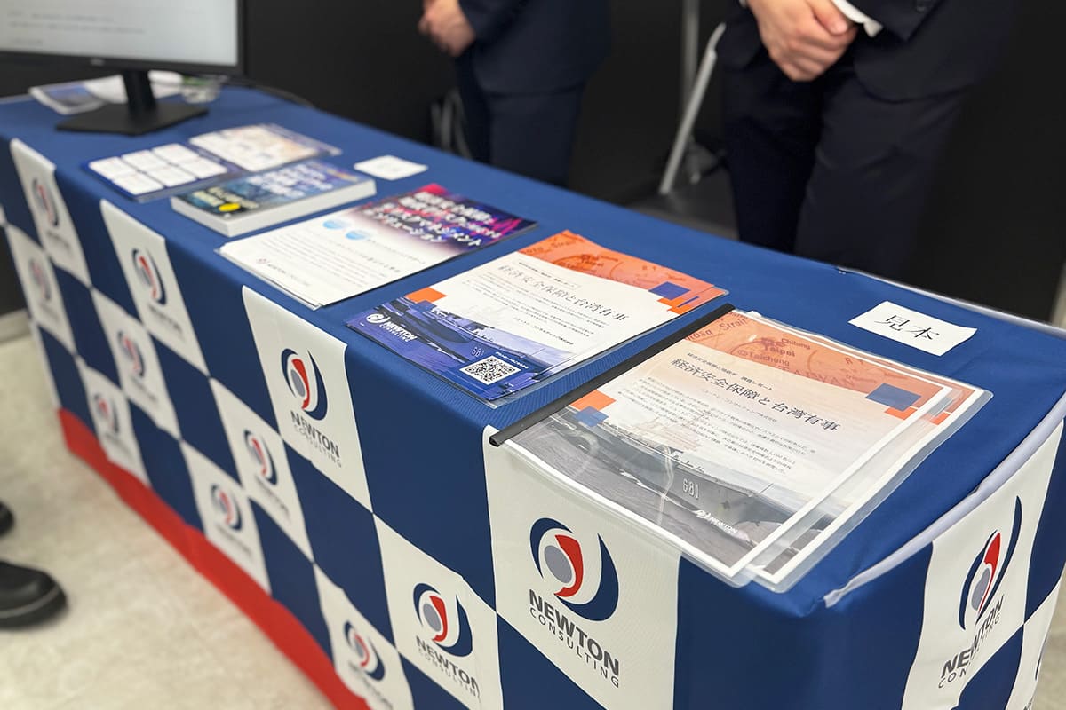 今回はブースも出展し、当社の提供するサービスの紹介を主に行いました。台湾有事についての調査レポートやサービスカタログ配布のほか、モニターには当社が開発したAIを使ったBCP訓練ツール「dan-lo」のデモンストレーション動画を放映。多くの方にお立ち寄りいただきました。